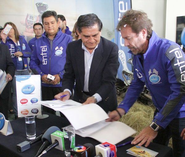 En un acto especial realizado ayer por la mañana en las oficinas de Entel, Oscar Coca, gerente general de la empresa, saludó las bondades deportivas del destacado piloto chuquisaqueño, al que colaborarán de manera incondicional en su periplo en el Dakar.