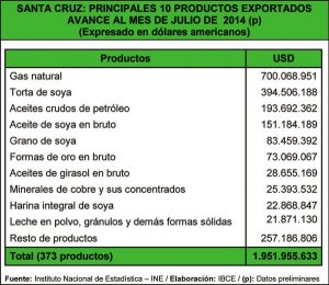 En el período 2003-2013, las exportaciones cruceñas sumaron $us 18.124 millones, registrando un crecimiento de 476 por ciento en dicho período. Representan, al mes de julio de 2014, el 25 por ciento del total exportado por...