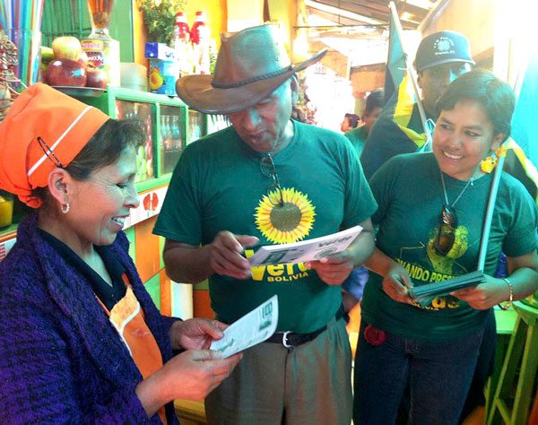 Sus candidatos al Órgano Legislativo como Alejandro Almaraz y Filemón Escobar hicieron campaña en la ciudad de Cochabamba vendiendo emparedados en las calles y plazas y recogiendo basura de las calles por su consigna de defensa del medioambiente.