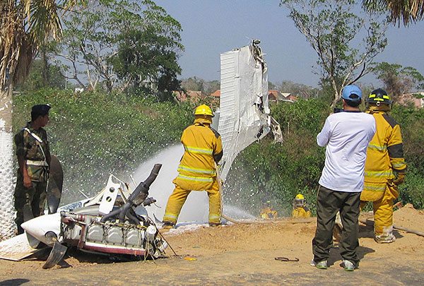 La nave era pilotada por Roberto Cuéllar, de 26 años y quedó destrozada luego de que en su trayectoria chocara contra una palmera que le destrozó el motor e hizo que las alas de la avioneta se desprendan.