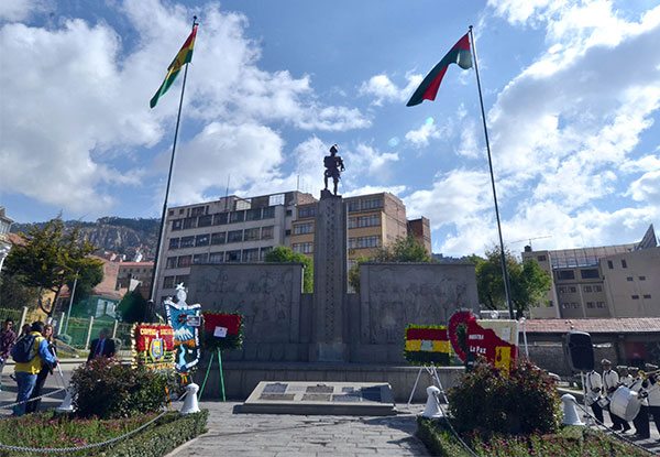 Desde tempranas horas de ayer, los actos oficiales iniciaron en el municipio de Laja, donde la Asamblea Departamental Paceña sesionó, mientras que en la ciudad de La Paz, en la plaza Alonso de Mendoza, se desarrollaron las ofrendas florales y alza de la bandera paceña.