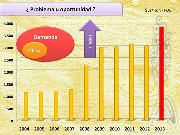Pese a las buenas perspectivas de crecimiento que muestra el mercado internacional, Clavijo señaló que se ha constatado que el cultivo del producto atraviesa una tendencia declinante en el rendimiento especialmente en las zonas tradicionales, por lo que reconoció que representa no solo un problema productivo, sino ecológico.