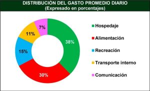 El gasto promedio diario del turista interno se estima en 188 bolivianos, distribuidos en hospedaje, alimentación, recreación, transporte interno en el destino y gastos en comunicación.