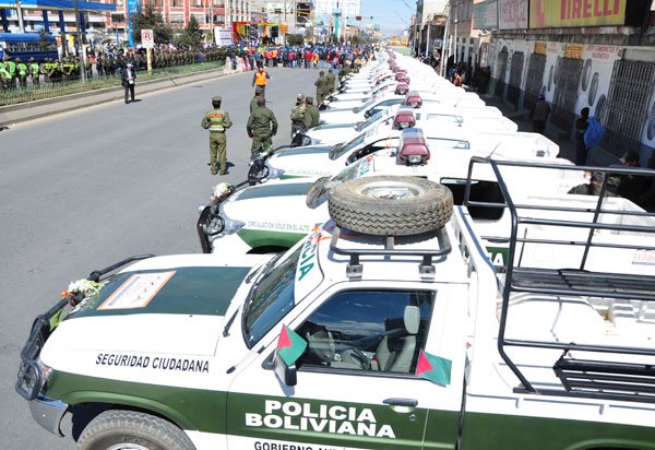 El alcalde de la ciudad de El Alto, Édgar Patana, entregó ayer 14 motorizados al Comando Regional de la Policía, con la finalidad de que sean utilizados en operativos del “Plan Cuadrante”.