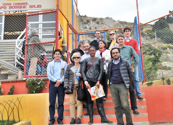 La representación internacional, integrada por 15 miembros de varios países, realizó un recorrido por las obras de mejoramiento ejecutadas por el Programa edil, entre ellas la casa comunal y el campo deportivo y no descartó financiar la transformación de las laderas.