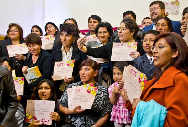 Un grupo de 800 certificados fueron entregados por el Centro de Innovación Tecnológica (CITE) de La Paz a los participantes que concluyeron el primer ciclo de capacitación en distintos procesos productivos a iniciativa de la Sociedad Boliviana de Cemento (Soboce). Durante la ceremonia hubo participantes que hicieron simultáneamente siete u ocho cursos en patronaje en dos o tres niveles, mantenimiento de equipos, diseño y en otras especialidades relacionadas con el sector textil confecciones. Este es el caso de Rolando Paucara Chambi, quien además de las indicadas áreas, es especialista en el manejo de máquinas rectas y overlock.