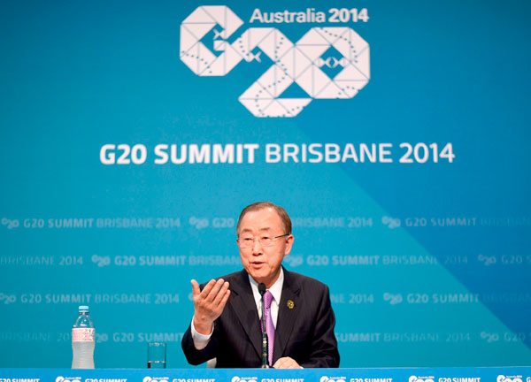 En Brisbane, que acoge a la cumbre del G20, Ban dijo que era necesario movilizar de forma masiva recursos financieros, logísticos y de tratamiento en los países afectados.
