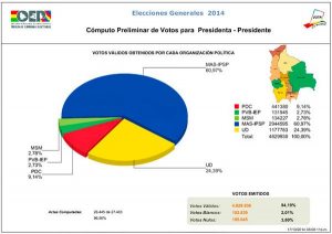 Ninguno de los partidos políticos; ninguno de los candidatos a la presidencia del Estado Plurinacional, ninguno de los candidatos a la Asamblea, que militaban en la oposición, trabajaron para destronar al oficialismo. Al contrario, fueron la ventaja, en sentido figurado, que dio el triunfo electoral al partido de gobierno.