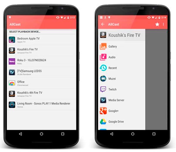 Tras ello sólo hay que iniciar la aplicación y elegir el dispositivo con el que se quiere conectar. En este caso el televisor. La aplicación AllCast se encarga de analizar automáticamente todos los dispositivos conectados tras pulsar el botón con el logotipo Cast en la esquina inferior izquierda. Presenta así tanto televisores como otros servicios disponibles para retransmitir, eligiendo aquí lo que el usuario quiere.