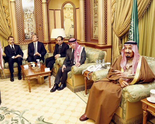 Dirigentes de todo el mundo están acudiendo este fin de semana a Arabia Saudí para ofrecer sus condolencias por la muerte del rey Abdalá Bin Abdelaziz al Saud y presentar sus respetos al nuevo monarca, el rey Salman. El rey de España, Felipe VI, fue el sábado uno de los primeros en reunirse brevemente con el soberano saudí. El presidente de EEUU, Barack Obama, hará lo propio el martes que viene. El viernes sólo los dignatarios musulmanes pudieron asistir al funeral, una sobria ceremonia de acuerdo con la rigorista versión del islam que impera en el Reino del Desierto.