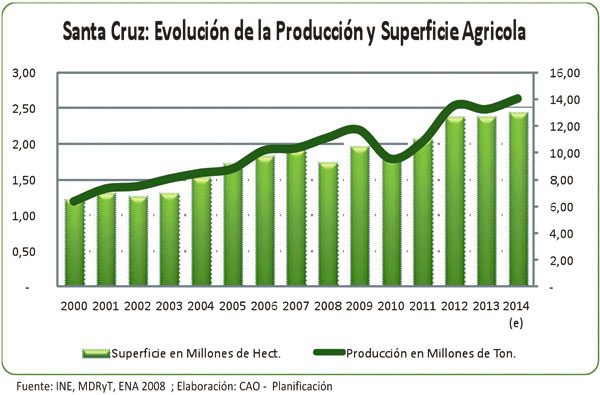 Edilberto Osinaga, gerente de la CAO con sede en Santa Cruz, identificó los factores que afectan el crecimiento y desarrollo del sector entre los que citó la seguridad jurídica en relación a la titulación de propiedades, asimismo la Función Económica Social (FES) y la incursión de grupos ilegales en la propiedad agrícola. En cuanto a la tecnología la agenda cruceña comprende además de los productos transgénicos, el riego, invernaderos e industrialización.