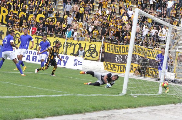 Ahí se cayó la estantería de los pandinos, y tres minutos más tarde, se abrió la cuenta por intermedio de Miguel Quiroga, quien aprovechó un rebote en el área, para rematar a ras del piso el balón, a pesar de su esfuerzo, Melgar no llegó nunca. Luego aparecieron los mejores momentos del Tigre, a los 26 minutos, Luis Melgar se mandó un golazo de “tijera” que el árbitro anuló por posición adelantada. Nelvin Soliz y Miguel Quiroga desbordaban por las bandas, mientras “ojitos” Melgar asomaba con peligro.