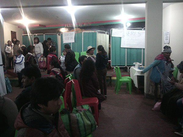 El Comité de Salud Técnico Político La Paz, el programa “Mi Salud” junto con el Servicio de Salud El Alto (Seas), el Banco de Sangre y otras entidades crearon la posibilidad de atender las diferentes patologías de la población alteña en más de 20 consultorios móviles instalados al interior de la Federación de Juntas Vecinales (Fejuve), según informó el médico Miguel Bonilla.