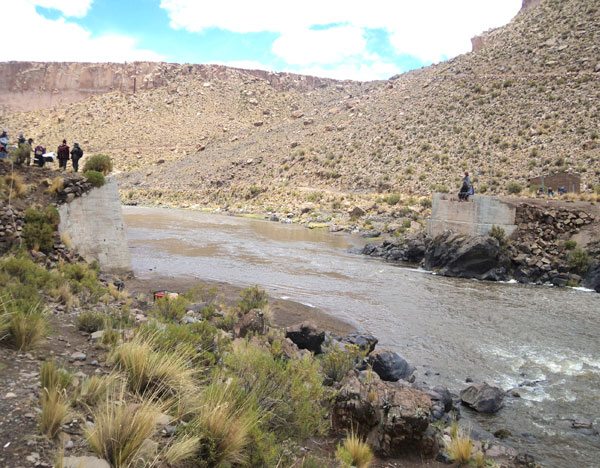 La ribera del río Chinche, a casi 30 minutos del punto tripartito que separa Bolivia con Perú y Chile, fue el escenario para el inicio de trabajos de los dos nuevos puentes. Las obras cuentan con una inversión que supera los Bs 6.5 millones. La Gobernación paceña espera vincular a las zonas alejadas del sur del departamento con el resto de La Paz.