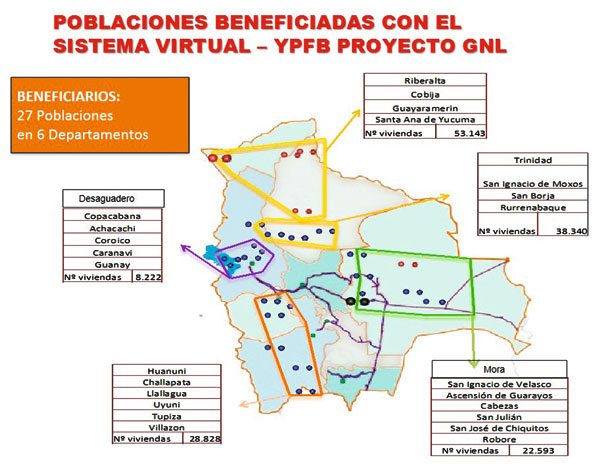 También tiene un impacto positivo en el sector industrial, puesto que contarán con abastecimiento de un combustible más barato a los combustibles líquidos. “En los proyectos industriales hemos solicitado a las industrias que se han agresivos en las inversiones, porque tendrán un abastecimiento rentable lo que permitirá generar mayores fuentes de empleo. En este caso las inversiones lo harán la empresa y YPFB, generando una sociedad anónima, donde YPFB será el operador y el inversionista podrá cambiar su abastecimiento de diésel, gasolina y GLP por gas natural”.