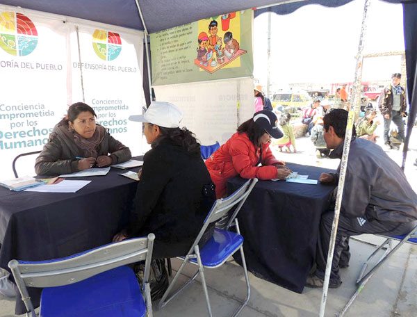 Cabe recordar que la Representación Especial de la Defensoría del Pueblo de El Alto recibe a diario solicitudes de asignación de abogado para realizar determinados trámites judiciales que, por su situación social, se ven impedidos de contratar los servicios profesionales de un abogado, ante esa realidad y con la finalidad de brindar respuesta a aquellos casos que ameritan tramitación judicial vía procesos familiares, civiles o sociales, la Representación ha propiciado la suscripción de un convenio con la carrera de Derecho de la Universidad Mayor de San Andrés, con el objeto de beneficiar a la población de esta ciudad y del área rural, que acude a la oficina defensorial.