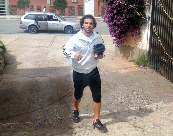 Unos minutos antes lo había pasado a saludar Leonel Reyes, entrenador de la preprofesional, para coordinar los detalles del partido que se disputó ayer en la cancha de Achumani.