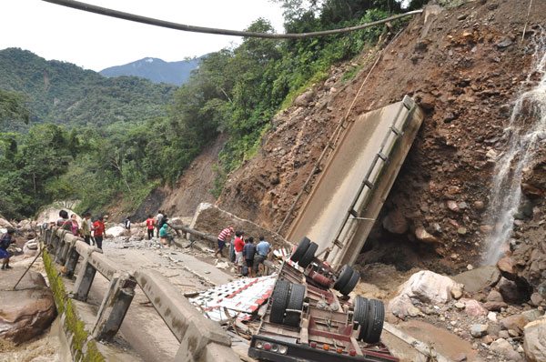 Agregó que son casi 60 metros de la plataforma que se desplomaron junto a la infraestructura del puente que deben ser reconstruidos paralelamente a la construcción de una nueva infraestructura. En tanto que las lluvias persisten en la zona pero con menor magnitud.