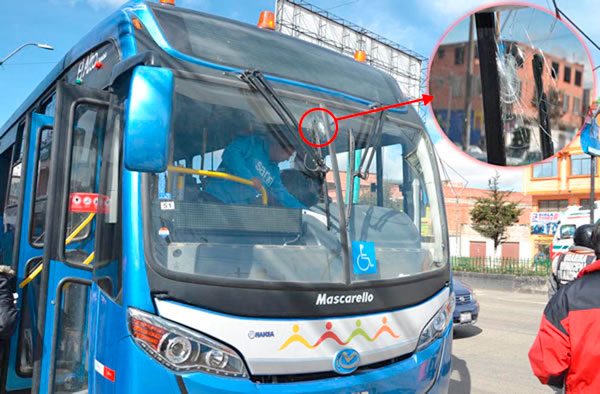 Por su parte, el gerente del Sistema Municipal de Transporte (Setram), Marco Fuentes, aseguró que el bus, que transportaba a 61 pasajeros, sufrió la rotura del vidrio ahumado lateral a causa de una pedrada en inmediaciones de las avenidas Octavio Campero y Josefa Mujía, en el denominado Cruce de Villas.