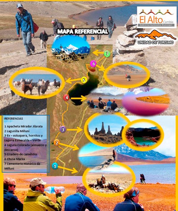 Con el objetivo de fortalecer, promover y difundir el recorrido de la ruta “Qhutaña” en la comunidad Alto Milluni del Distrito 13, la Unidad de Turismo del Municipio organiza la venta del paquete turístico a esa región de El Alto en coordinación con la Empresa Estatal Boliviana de Turismo (Boltur).