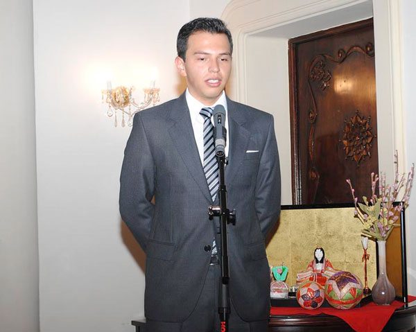 Durante la recepción de despedida, el Jefe de la misión japonesa expresó sus mejores augurios a Óscar ya que Natalia no pudo estar presente.