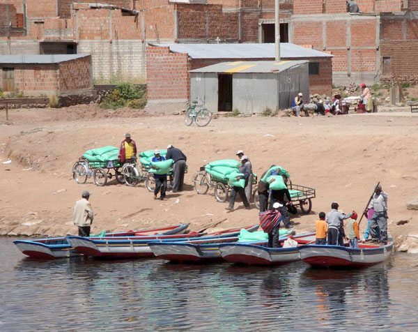 Dichos productos pasan por el puente denominado “Playa Azul” y son transportados por tricicarros (también conocidos como tricicholos), posteriormente deben pasar el estrecho del lago en pequeños botes efectuando un pago de dos soles por el transporte hasta el sector peruano, donde otro grupo de tricicarros aguardan para trasladar la mercadería hasta las principales calles del lado peruano.