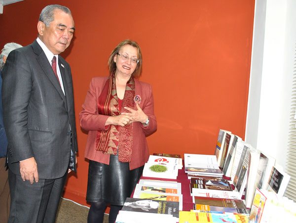 El embajador del Japón, Hidehiro Tsubaki, visitó el Espacio Simón I. Patiño con un importante lote de libros, para ponerlos a disposición de los paceños.