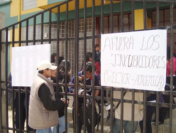 De acuerdo con las denuncias realizadas por los alumnos de este establecimiento educativo, la maestra que está a cargo de la materia de lenguaje, María Victoria Mamani, no estaría avocándose específicamente a dictar su materia, más al contrario, con una actitud extraña y de forma insistente, en plena clase se estaría dedicando a tocar temas que nada que tendrían que ver con sus clases haciendo que muchos de los estudiantes optaran por abandonar los horarios en que les tocaba pasar con dicha maestra.