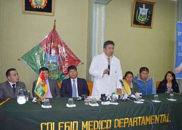 El presidente del Colegio de Médicos de La Paz, Luis Larrea, junto al Consejo Médico, exigen la libertad del médico Jhiery F.S., luego de exponer y descartar, con la ayuda de cuadros comparativos, las supuestas falencias y errores cometidos por los peritos del Instituto de Investigaciones Forenses (IDIF), que afirmaron que hubo abuso sexual en contra del bebé Alexander y detallar que los exámenes genéticos descartan el contacto con el menor.