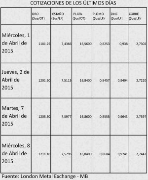 El 2 de abril la libra fina de estaño se cotizó la baja en 7.5115 y la alta en 7.5160 dólares, según información del portal del Ministerio de Minería. La empresa de Huanuni trabaja con un costo operativo de 8 dólares por libra, es decir, un dólar por encima del precio de venta.