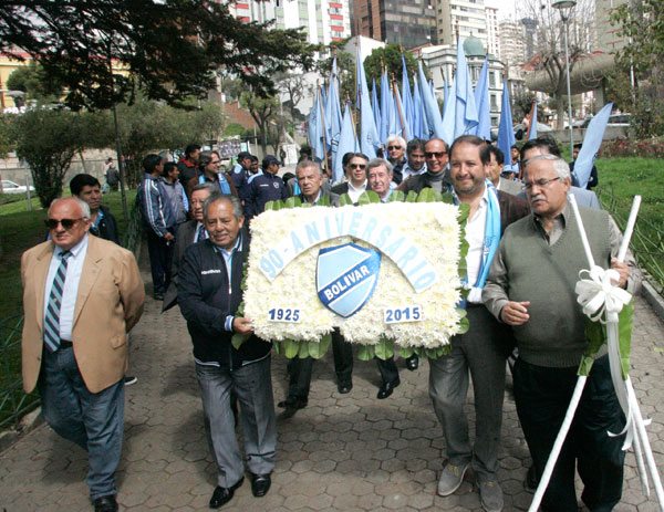 Bolívar celebró sus 90 años, en un acto sencillo pero emotivo a los pies de la estatua de Mario Mercado, en la Plaza Bolivia.