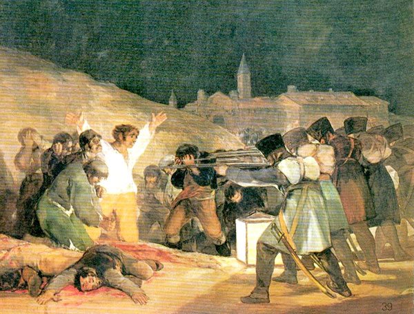 En Europa, es destacable la obra pictórica de Goya, quien pintó descarnadamente la invasión del ejército napoleónico a la península ibérica en el Siglo Diecinueve. Sus óleos sobre el fusilamiento de mayo de 1808 y sus grabados testimoniando la ocupación sorprenden aún en nuestros días por su crudeza, realismo y rechazo al régimen napoleónico.