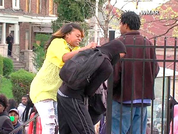 La televisión local WMAR grabó esas imágenes y el video ha dado la vuelta al mundo a través de las redes sociales, donde se publica con las etiquetas “#Baltimoremum” (“La madre de Baltimore”) y “#momoftheyear” (“La madre del año”), publicó Efe.