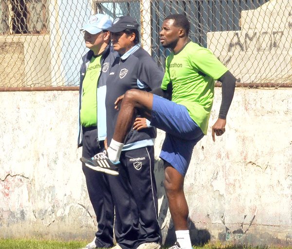 Carlos Tenorio volvió a trabajar, ayer realizó un trote liviano tras la revisión del kinesiólogo Omar Rocha, quien estaba atento a al trabajo del “demoledor”.