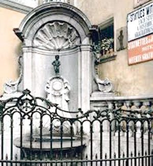 En el corazón de la antiquísima ciu-dad de Bruselas (Bélgica), en el cruce de la Rue de L’ Tuve y la Rue de Chêne, se levanta entre dos grupos de viejas casonas, una bella fuente de agua, en cuyo alto se encuentra una pequeña estatua de bronce, de 61 cm de alto, y que representa en tamaño natural, a un niño desnudo de unos tres años de edad orinando dentro del cuenco de la fuente y cuyo fluido mantiene el nivel del agua.