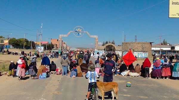 El bloqueo de caminos tuvo su primer capítulo la pasada semana cuando representantes de tres comunidades; Achica, Irpa Chico y Ancara; protestaron exigiendo se construya una carretera en su municipio, sin embargo, la protesta realizada ayer fue multitudinaria al punto de que no pudo ser disuadida por los efectivos policiales y menos por el ministro de Gobierno, Hugo Moldiz, quien se hizo presente en el bloqueo en dos oportunidades.
