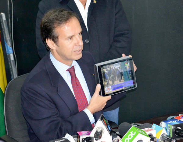 En conferencia de prensa, el exmandatario mostró un video en el que Morales, el extinto Carlos Villegas que fue presidente de YPFB destacan la importancia del descubrimiento del bloque Aquio en un acto en 2011.