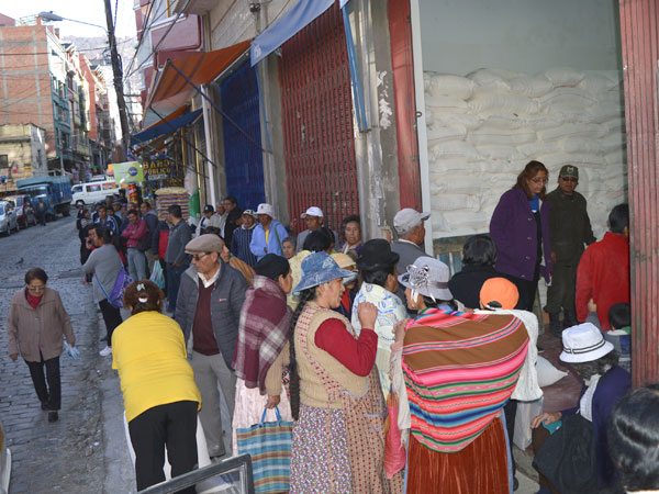 El paro determinado por panificadores de La Paz y El Alto, provocó escasez del producto desde el lunes pasado; a pesar de la decisión de elaborar pan y distribuir junto a los Supermercados, la oferta no colmó la demanda de la población.