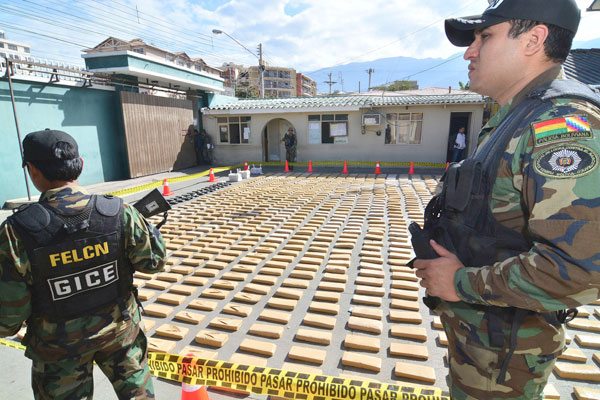 Cochabamba, (EL DIARIO).- Efectivos de la Fuerza Especial de Lucha Contra el Narcotráfico (Felcn), este fin de semana en el barrio 1 de Mayo de la zona sud incautaron al interior de un domicilio 1.2 toneladas de marihuana y aprehendieron a dos personas que se encontraban en el lugar.