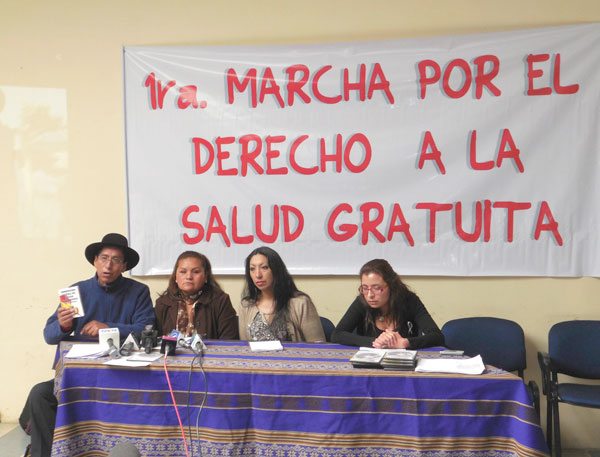 Personas que padecen cáncer, VIH/sida, insuficiencia renal entre otras enfermedades marcharán hoy en la ciudad de La Paz, para exigir al Gobierno el acceso gratuito al servicio de salud, tal como establece la Constitución Política del Estado (CPE).