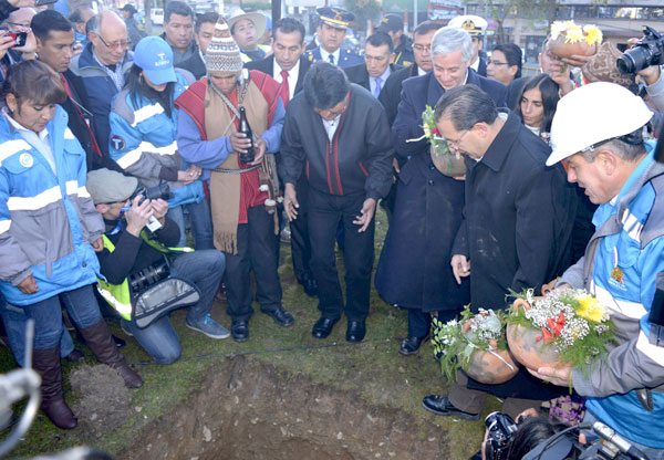 Ayer las autoridades hicieron el acto simbólico del colocado de la piedra fundamental de ambas líneas. Aquel acto dio inicio a la construcción de la estación “Plaza Villarroel”, perteneciente a las líneas Blanca y Naranja. La Estación será subterránea de Teleféricos urbanos, única en el mundo, según El gerente de la empresa estatal Mi Teleférico, César Dockweiler.