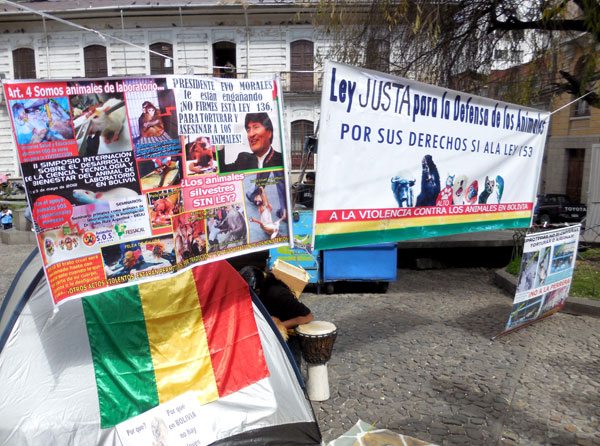 Los activistas defensores de los animales iniciaron protestas contra la aprobación en las dos cámaras de la Asamblea Legislativa Plurinacional la Ley para la Defensa de los Animales Contra Actos de Crueldad y Maltrato y de esa manera evitar la promulgación por el presidente Evo Morales.