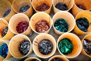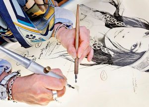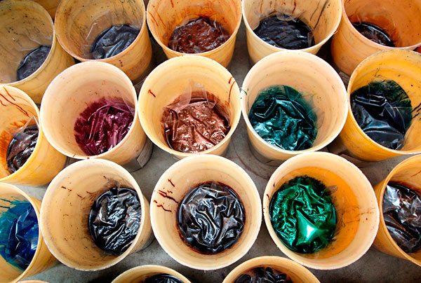 La confección de este singular tesoro tiene lugar en el atelier Pierre-Bénite, cerca de Lyon (Francia), donde los coloristas y artesanos plasman en seda –en este caso, procedente de una hilandería brasileña que sigue los estándares de calidad fijados por Robert Dumas el siglo pasado– los diseños que les llegan desde París. Dos años y más de 700 horas de trabajo son necesarios para realizar cada pieza, en un proceso en el que intervienen múltiples manos, desde las del artesano que realiza los grabados (uno por cada color plasmado en un diseño, normalmente unos 30) hasta las de las experimentadas costureras que ematan el pañuelo a la francesa (esto es, cosiendo los bordes hacia fuera). Aunque quizás una de las operaciones más importantes la lleven a cabo los coloristas. “El color es subjetivo. Nunca sabemos si nuestra elección será atractiva, si habrá armonía entre los tonos. Los colores feos no existen, solo las malas combinaciones”, explica Leïla Menchari, directora del panel de color. Tan ardua como creativa, la labor de estos artistas requiere mucho tiempo, ya que cada diseño se produce en, por lo menos, diez tonalidades diferentes (“Nuestra paleta tiene que ser extremadamente variada para que le siente bien a todo tipo de mujer, sin importar su tono de piel, de cabello o figura”, revela Menchari), y no son pocas las veces que se descarta el resultado final. Explicado mediante cifras, un carré es la consecuencia de los más de 300 capullos de seda necesarios para su elaboración, de las 400 horas utilizadas en el grabado de las planchas y de las 800 personas que participan en el proceso. Un resultado que registra 79 gramos exactos de peso.