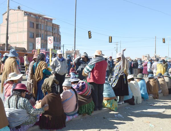 En un recorrido que efectuó EL DIARIO, aproximadamente desde las 09:00 de la mañana, se pudo evidenciar que algunos exdirigentes y vecinos se agruparon en el sector de la extranca de Senkata, donde se intentó cerrar el paso de los vehículos que circulaban por esta carretera que permite la conexión con diferentes departamentos y de la misma manera el tránsito de minibuses del servicio local.