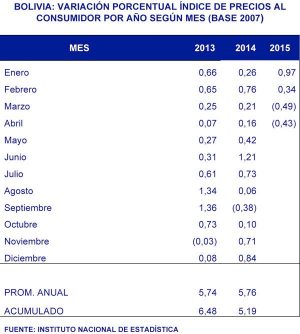 Mientras en 2013, ese mismo indicador estaba por encima del 6,5 por ciento; es decir que en ese año en enero llegó a 6,68 por ciento, en febrero 6,67 y en marzo 6,55, y al finalizar la gestión, diciembre, la cifra cerró con 5,42 por ciento.
