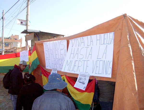 Entretanto, la vigilia, la huelga de hambre y la protesta generalizada de los vecinos de este sector de la avenida Panorámica continúa, a pesar de los compromisos que asumieron algunos personeros del Municipio sin que a la fecha se pueda concretar una solución.