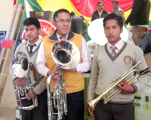En medio de sonidos musicales y bandas de los diferentes establecimientos, el director de Educación, Jhojan Sossa, entregó equipamiento a nueve unidades educativas, dotación en la que se invierte 364.000 bolivianos.