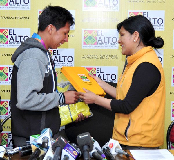 “Los reconocimientos los hacemos con mucho cariño, nos llena de orgullo a toda la ciudad de El Alto saber que de todas las medallas que han sido traídas para nuestro Estado Plurinacional (de Bolivia) tres son de deportistas alteños”, dijo la autoridad en un desayuno junto a los deportistas.