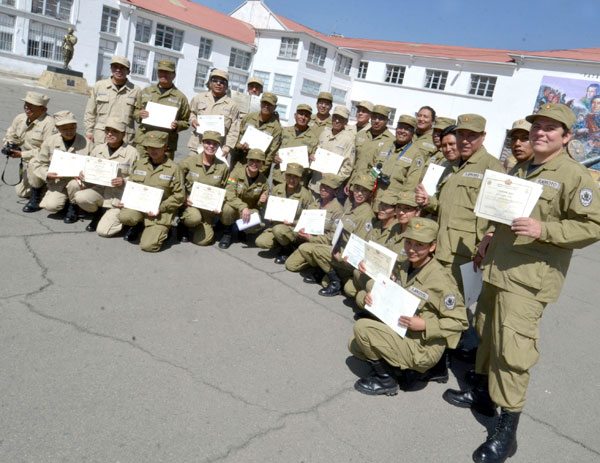 El Ejército Boliviano graduó ayer a 41 periodistas de varios medios de comunicación, estatales y privados, con el título de “Corresponsal Militar”, luego de un curso intensivo de 8 semanas cuya revista se realizó en la Escuela de Cóndores, en la localidad de Sanandita de Tarija. El adiestramiento fue retomado luego de 19 años.