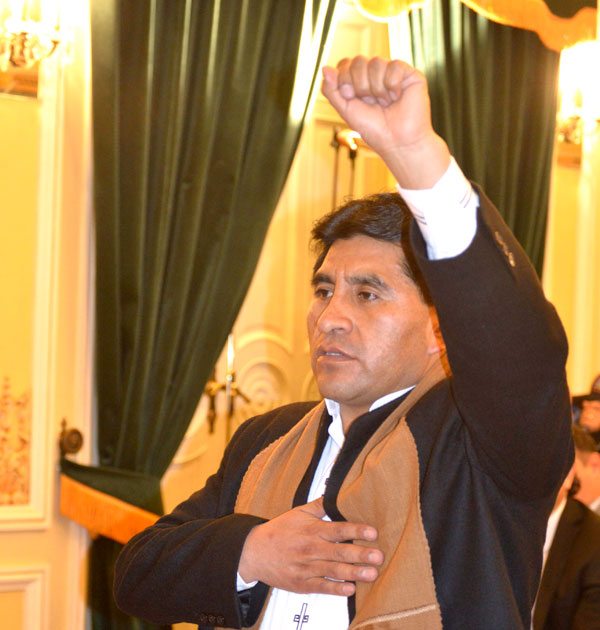 “Presidente Evo el hecho de que me haya convocado para colaborarle en calidad de ministro para mí es un honor”, remarcó Cocarico después de juramentar frente al Jefe de Estado.